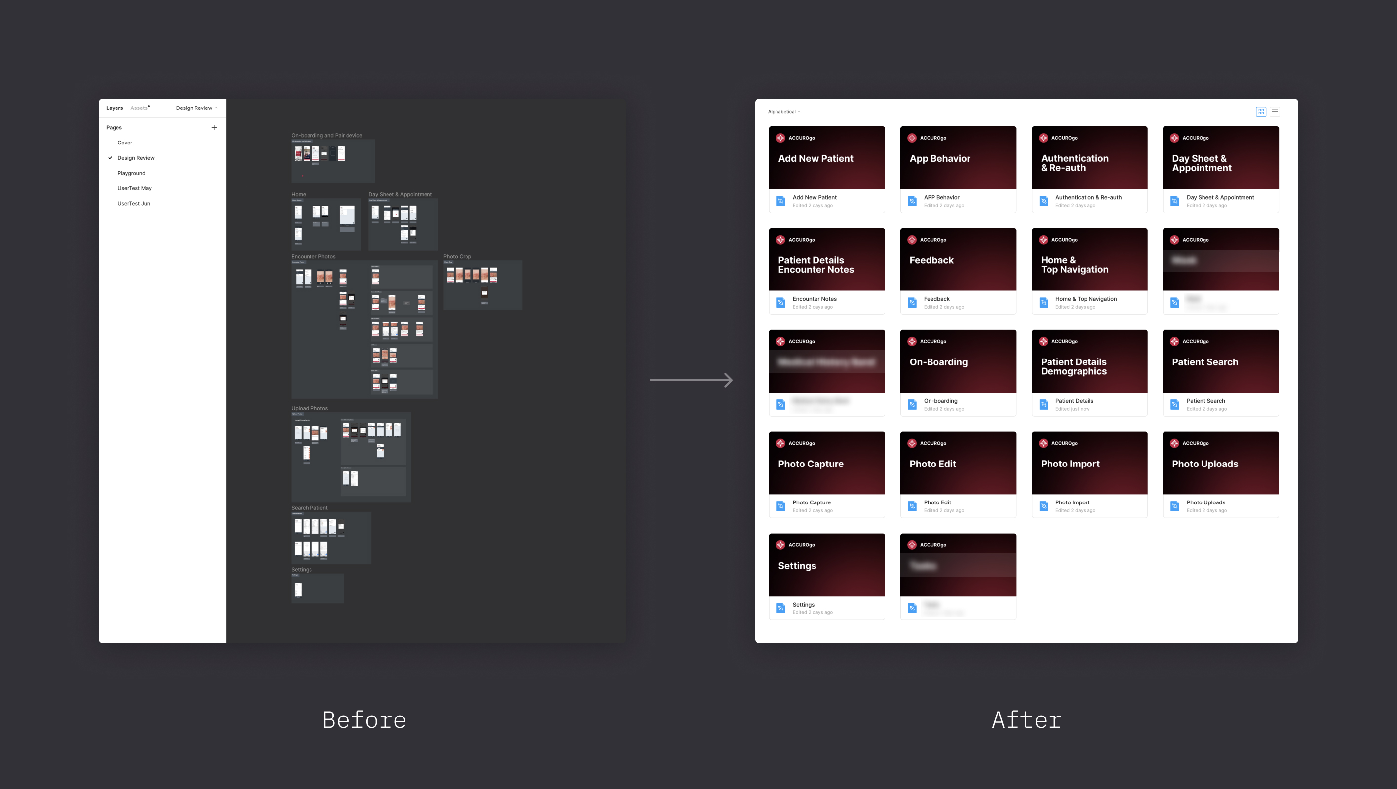 Initially, we had all the features in one design file in Figma. That makes it hard to navigate and even takes a long time to load the whole file. I started to separate all these key features and put them individually in their own file. This makes it much easier for developers to find the right design.